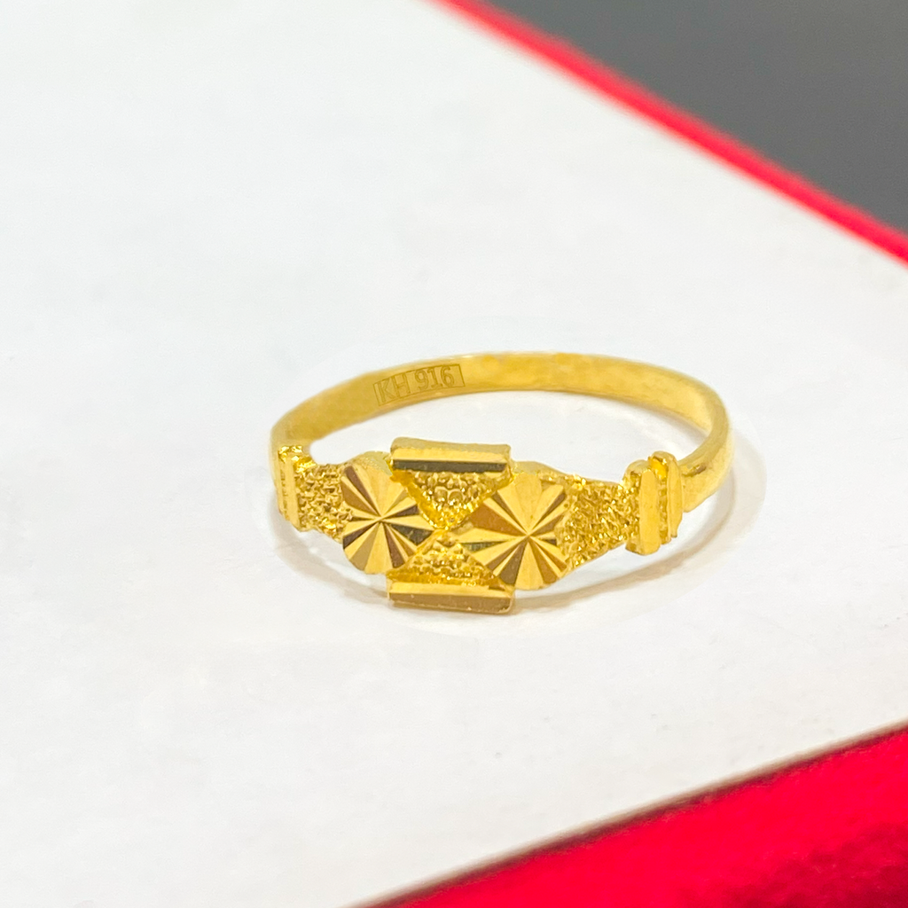 916 Gold (1.42g) Geometric Ring | Cincin Emas 916 Segi | Modern Textured Design