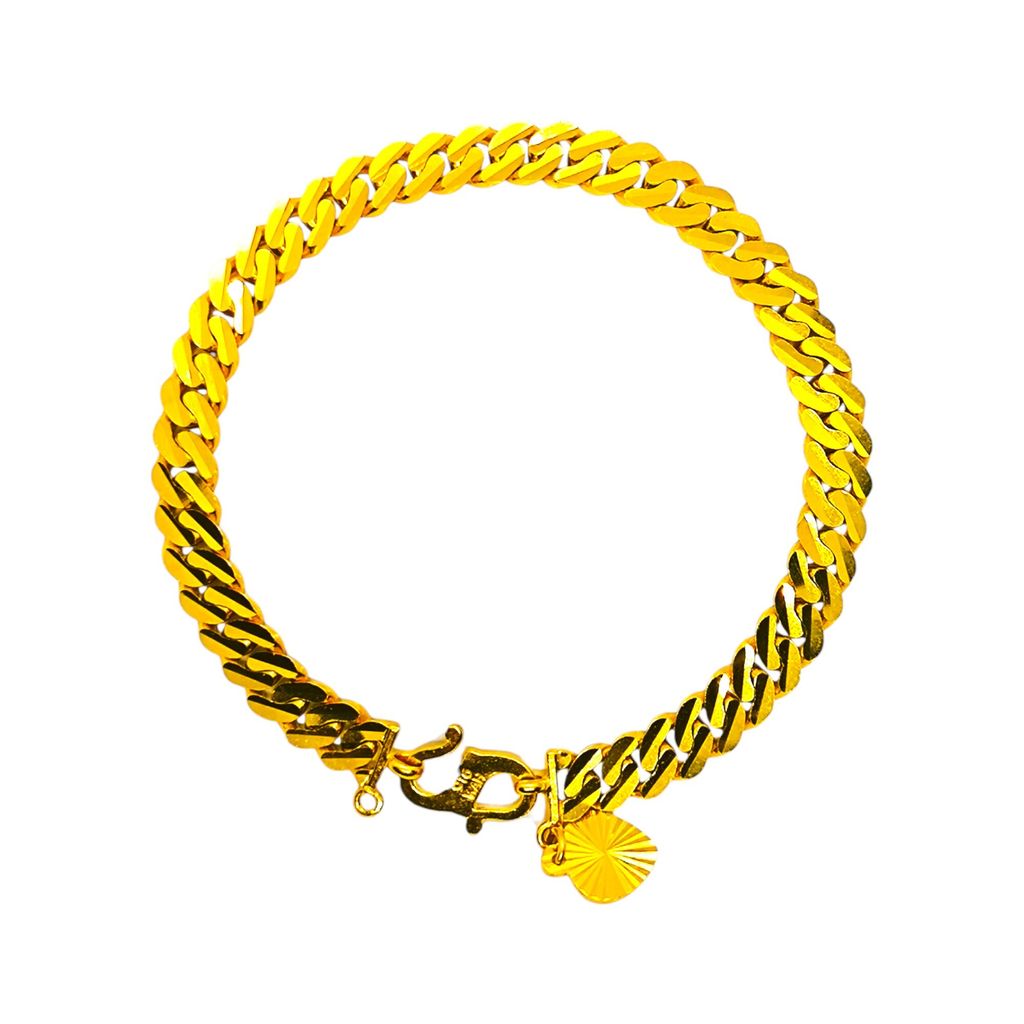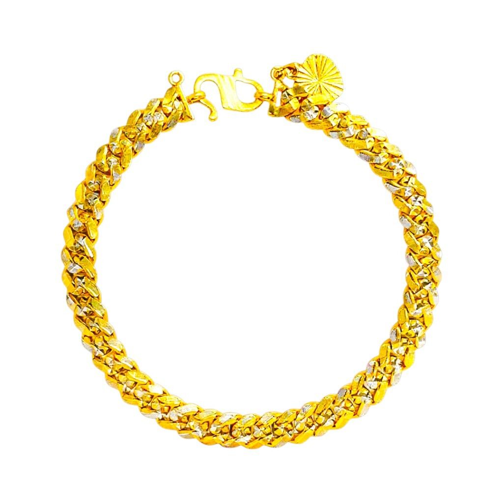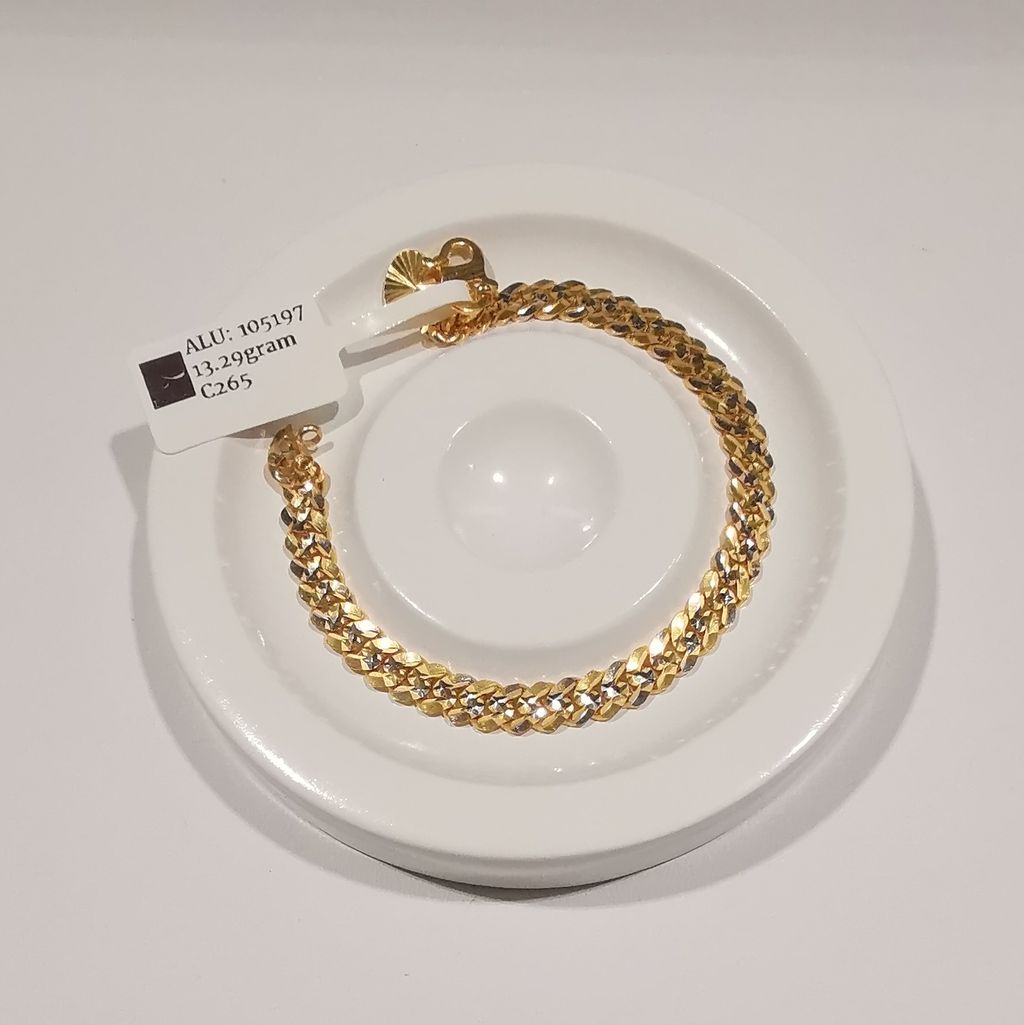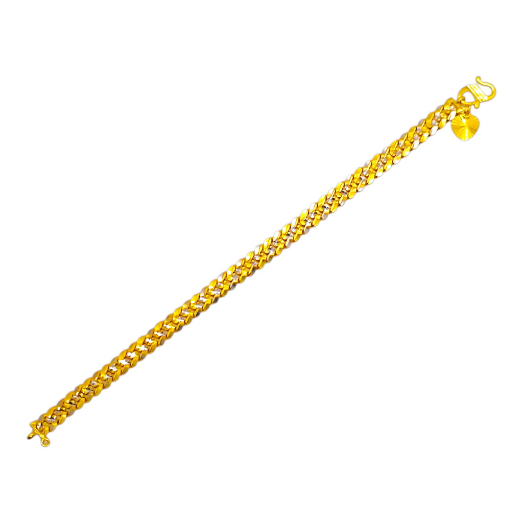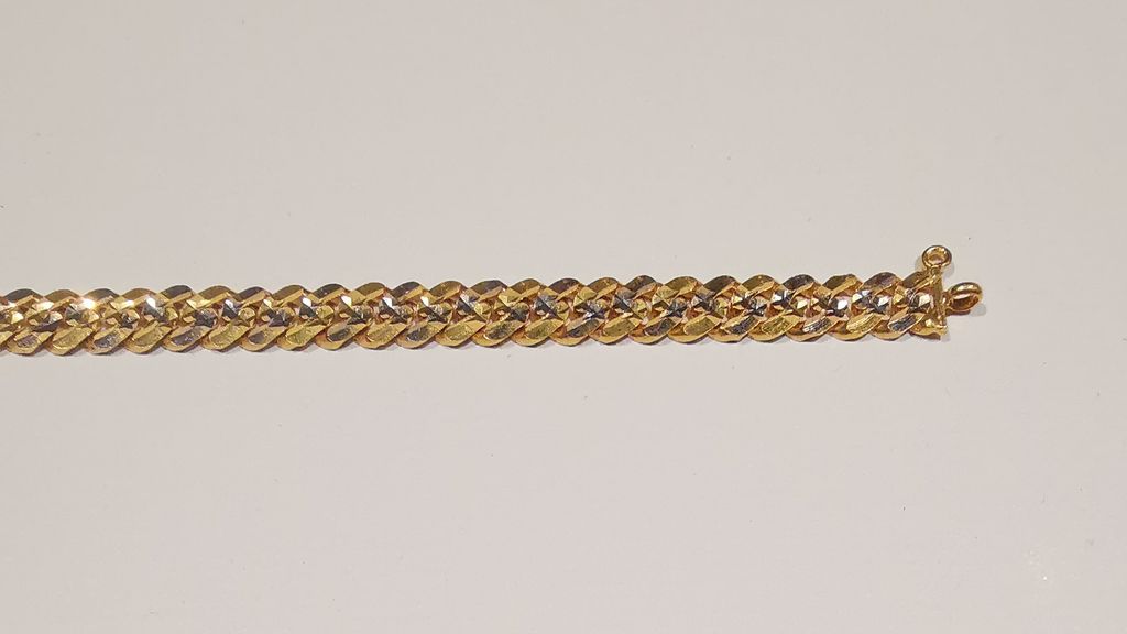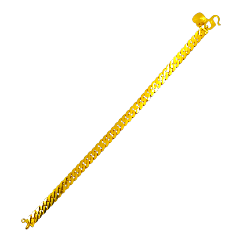 Product Highlight: Add a touch of modern sophistication to your style with this stunning 22K gold bracelet. This unique piece features a flat, wide-link chain where each link is meticulously finished with a sparkling diamond-cut pattern. The faceted surface catches the light beautifully, creating a brilliant and eye-catching effect. With a solid weight of 13.29 grams, this bracelet offers a luxurious and premium feel on the wrist.