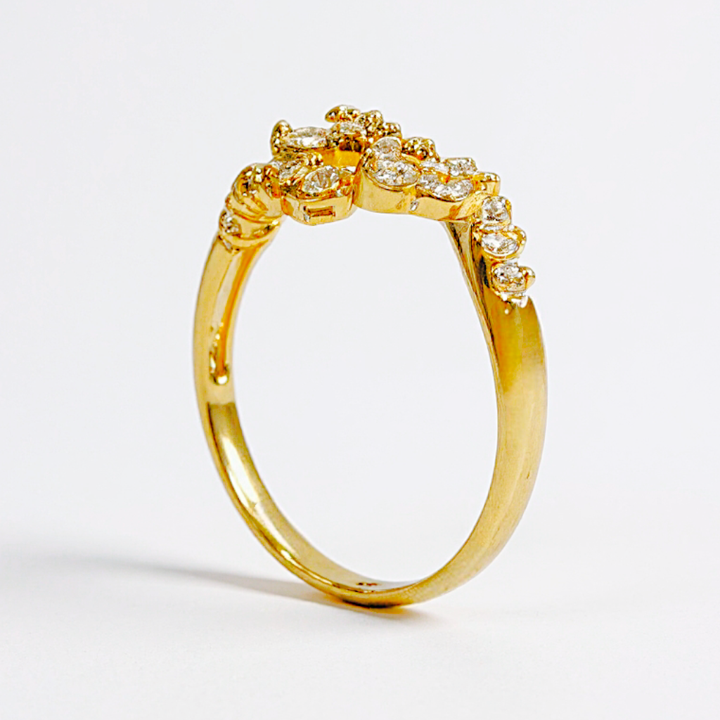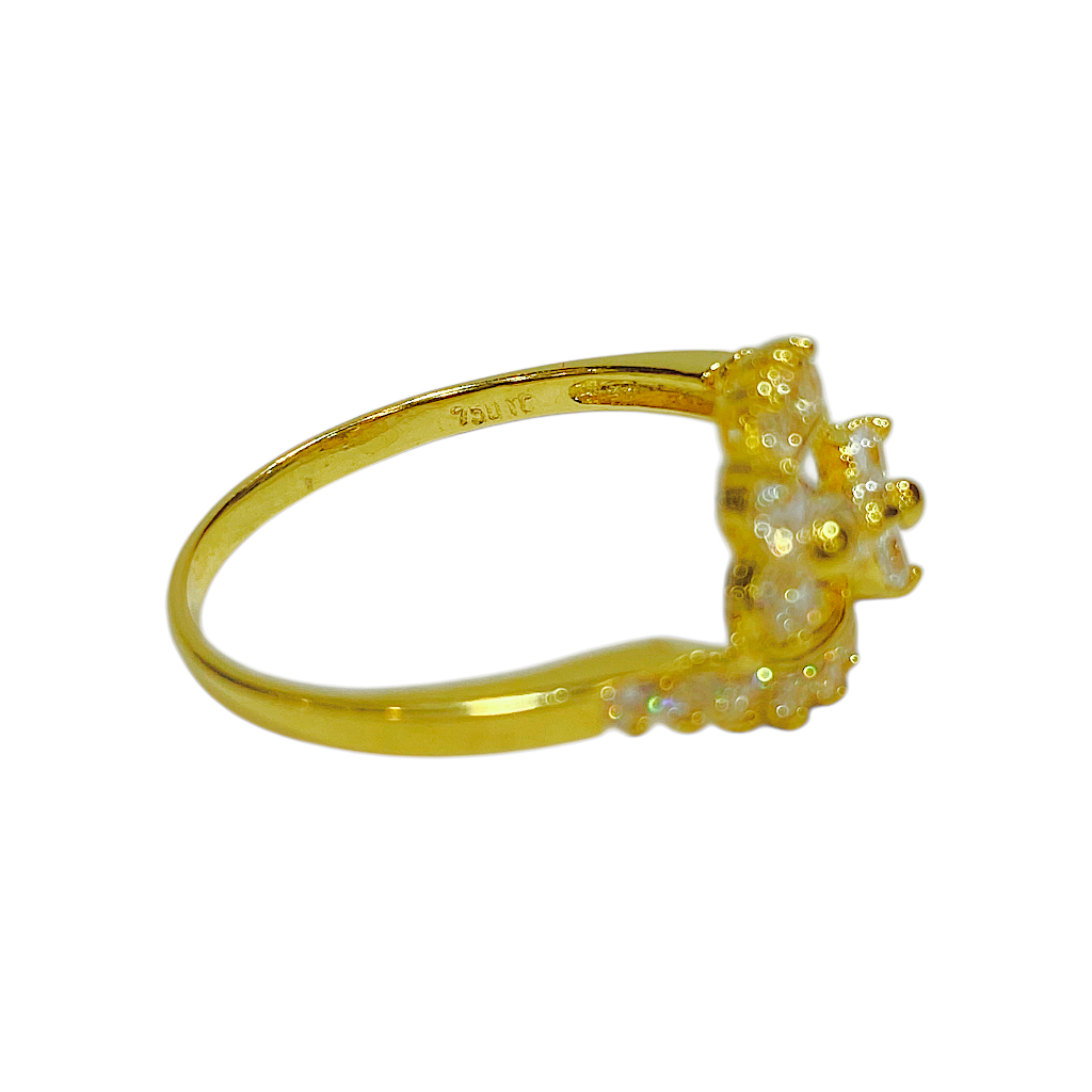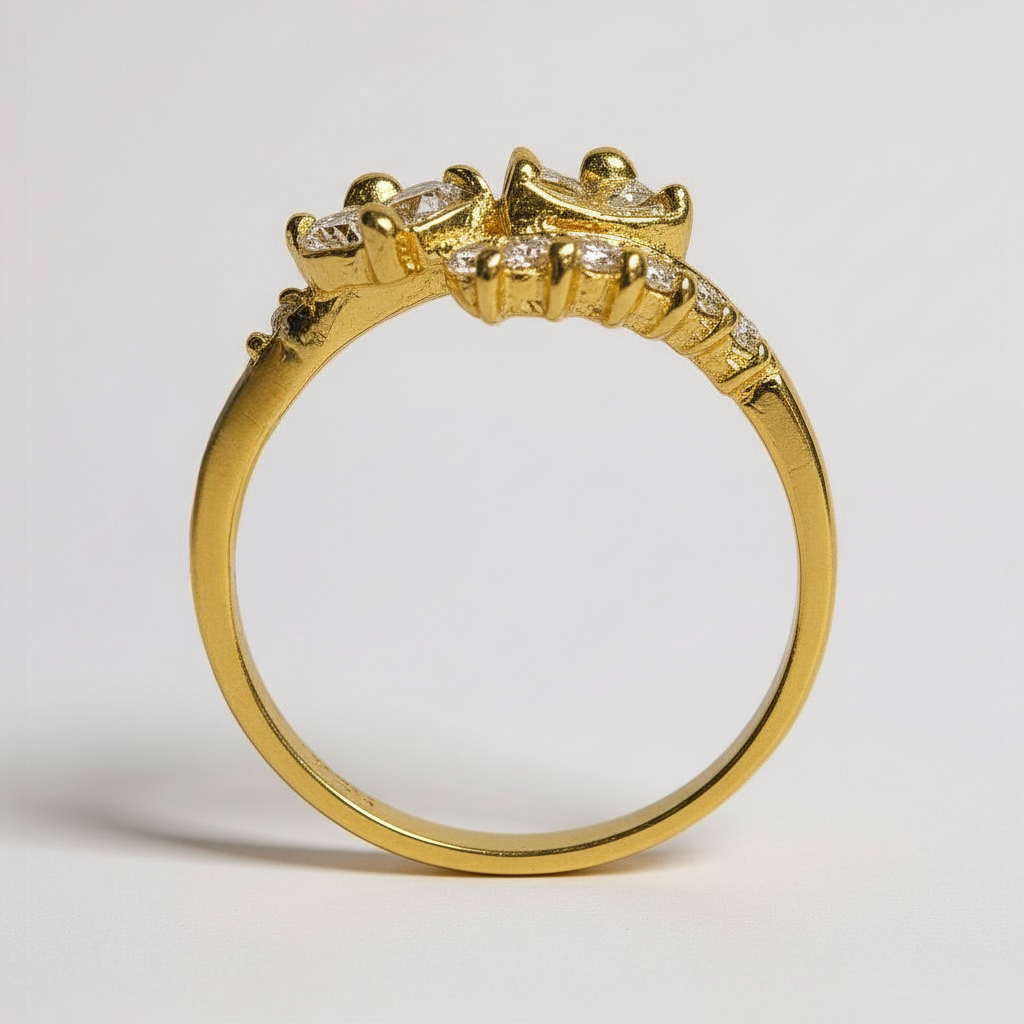 Elevate your jewelry collection with this stunning 18K yellow gold (750 hallmark) ring. Featuring a unique, fluid bypass design, this piece is meticulously handset with premium white zircons that capture the light from every angle.
