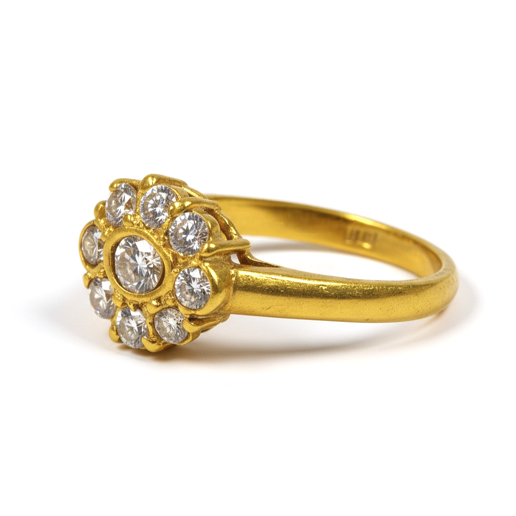 • Halo Detail: 10 round-cut zircons in a protective prong setting.